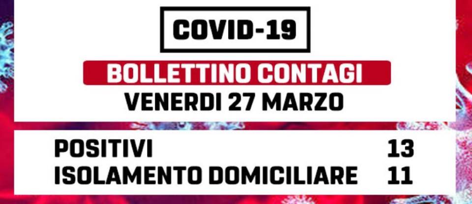 Rispetto a ieri giovedì 26 marzo aumentano di un’unità i positivi e coloro che sono seguiti a domicilio