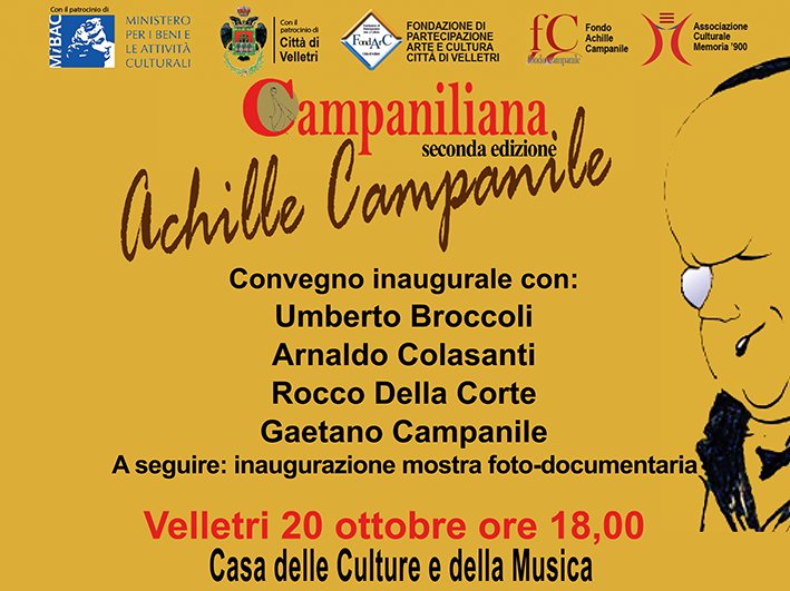 Uno scrittore attento alla realtà che lo circonda è sempre alla ricerca di spunti per raccontare. Così fece Achille Campanile, titolare di una rubrica settimanale fissa su “L’Europeo”, nella quale si occupava di dare il suo personale commento e la sua interpretazione a quello che si vedeva sul piccolo schermo. “Critica televisiva”, quindi, era uno spazio – fra l’altro molto seguito e atteso dai lettori –che coniugava il giornalista Campanile e il critico Campanile, con il narratore a fare da sfondo. Pur non definendosi un fustigatore di costumi, l’autore romano si sentiva in parte tradito dalla deriva della televisione, rea di proporre palinsesti di scarsa qualità. Sull’attività di Achille Campanile giornalista e critico televisivo, a partire dalle colonne de “L’Europeo” e per finire alle interviste, ai contributi sulle varie testate e ai saggi sul tema, si incentrerà il convegno di sabato 20 ottobre 2018, fissato per le ore 18.00 all’Auditorium della Casa delle Culture e della Musica. Ospiti saranno Umberto Broccoli, archeologo, docente, giornalista e autore RAI, e Arnaldo Colasanti, critico, saggista e conduttore tv. Relatori di assoluto livello, addetti ai lavori e conoscitori della figura e del personaggio di Campanile, che potranno portare il loro contributo, allargandolo alle questioni di più stringente attualità, nonché analizzando il messaggio che il poliedrico intellettuale romano cercava di lanciare in merito alla televisione e al ruolo e alla funzione della stessa. A dialogare con gli ospiti sarà Gaetano Campanile, figlio dello scrittore, il quale oltre a portare la propria testimonianza in merito alle parole degli intervenuti racconterà, come sempre, gli aneddoti più squisitamente inerenti la vita privata e la biografia campaniliana. Interverrà anche Rocco Della Corte, studioso di letteratura italiana contemporanea e curatore, quest’anno, della Mostra fotografica e documentaria insieme a Gaetano. Prima del convegno gli attori Vittorio Viviani e Martina Carpi si cimenteranno in Dramma a mezzanotte. Saranno proiettati video e contributi originali dello scrittore.L’ingresso è libero, fino ad esaurimento posti, e immediatamente dopo la fine dell’incontro sarà inaugurata nella limitrofa Sala degli Affreschi la Mostra fotografica e documentaria, intitolata “Creazioni della fantasia e invenzioni letterarie”. La mostra sarà aperta tutti i giorni, dal 20 al 28 ottobre, con i seguenti orari: al mattino dalle 10.00 alle 12.30 e al pomeriggio dalle 16.30 alle 19.00 (domenica solo mattina). Sono previste visite guidate su prenotazione per le scuole del territorio e l’accesso è libero. I primi tre appuntamenti della “Campaniliana 2018”, dunque, sono svelati: conferenza stampa il 13 ottobre (ore 17.30, Sala degli Affreschi), Convegno e Inaugurazione della Mostra il 20 ottobre (ore 17.30, Auditorium della Casa delle Culture e Sala degli Affreschi), Spettacolo Teatrale con la messa in scena dell’opera vincitrice della prima edizione, “Prestazione occasionale” di Francesco Brandi, domenica 21 ottobre alle ore 18.00 presso il Teatro Artemisio Gianmaria Volonté alla presenza dell’autore. L’evento è prodotto dalla Fondazione di Partecipazione Arte e Cultura, diretta dal Maestro Claudio Maria Micheli, insieme all’Associazione Memoria ‘900 e con l’apporto del Fondo Campanile.