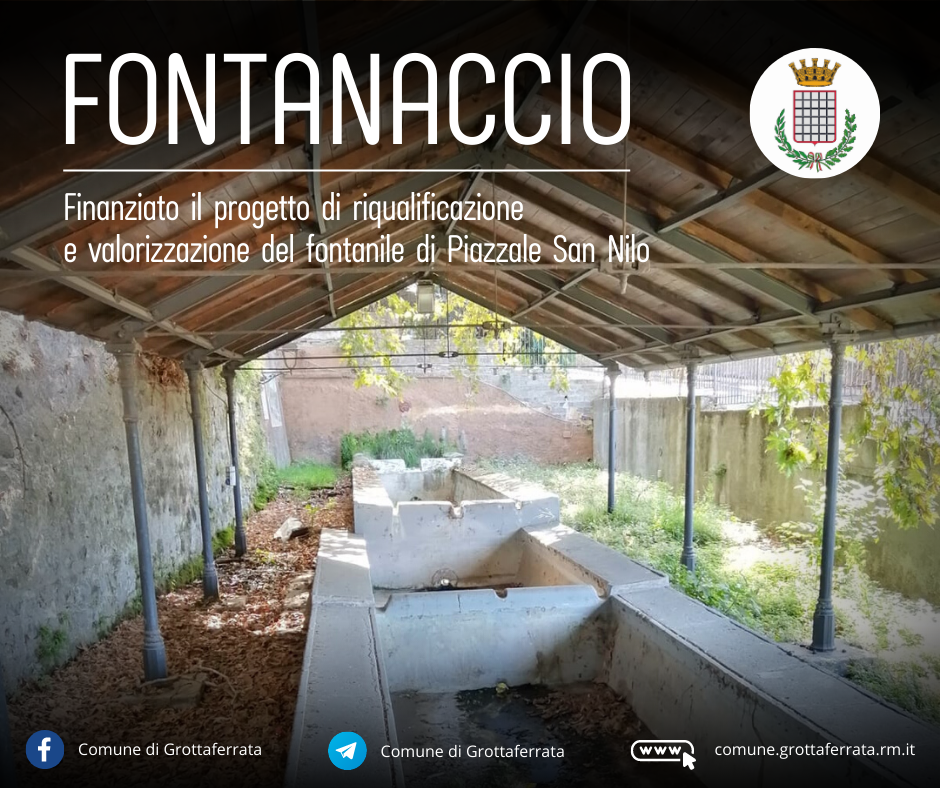 In partenariato con le associazioni Grottaferrata Sostenibile, Italia Nostra Castelli Romani e U Lengheru Neru, l’Amministrazione comunale ha presentato un progetto per la riqualificazione e la valorizzazione dell’antico fontanile di Piazzale San Nilo, noto in città come “Fontanaccio”, ottenendo così un finanziamento di 26.000 euro, pari alla cifra richiesta.