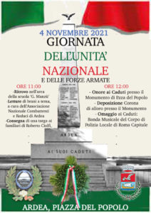 Domani, 4 novembre 2021, la Città di Ardea celebrerà la Giornata dell’Unità Nazionale e delle Forze Armate. E lo farà con un programma di celebrazioni istituzionali, accompagnato da una decisione assunta dalla Giunta Comunale guidata dal Sindaco Mario Savarese: il Milite Ignoto sarà Cittadino Onorario di Ardea.