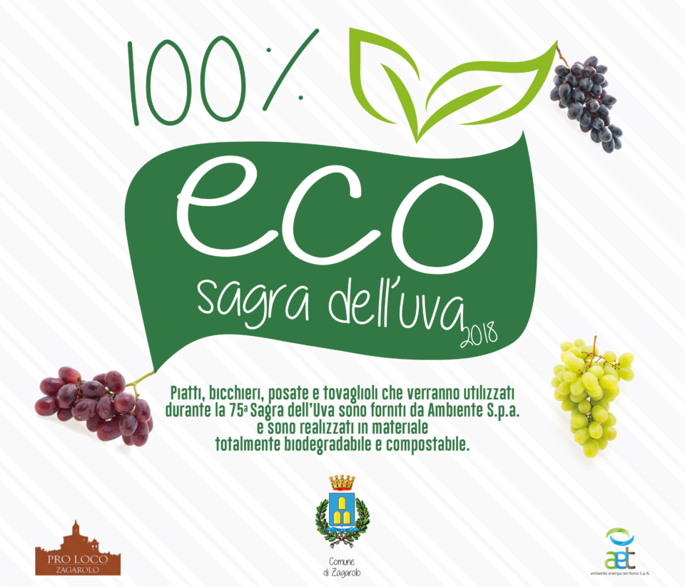 utilizzati durante la Sagra, infatti, sono forniti da Ambiente S.p.a. e sono realizzati in materiale totalmente biodegradabile e compostabile. “Abbiamo raggiunto il traguardo di organizzare e presentare una Sagra interamente “eco” – spiega il Sindaco di Zagarolo, Lorenzo Piazzai. – Un risultato da condividere con l’intera cittadinanza, conquistato