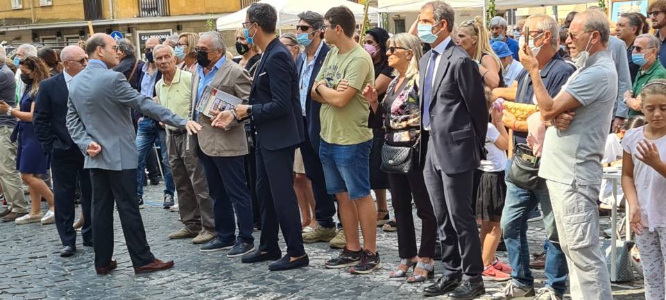 Il candidato sindaco, affiancato dall’ex sindaco Alessandro Spalletta e da una rappresentanza dei suoi candidati in consiglio comunale, hanno reso omaggio alle vittime del bombardamento dell’8 settembre 1943.