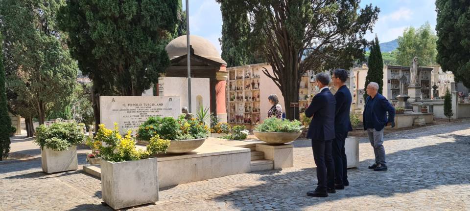 Al termine delle manifestazioni comuni, sempre insieme ad Alessandro Spalletta, all’ex assessore e consigliere Gelindo Forlini e agli ex consiglieri comunali Olga Masi e Matteo Angelantoni il candidato sindaco si è recato presso il cimitero per rendere omaggio al sacrario delle vittime del bombardamento.