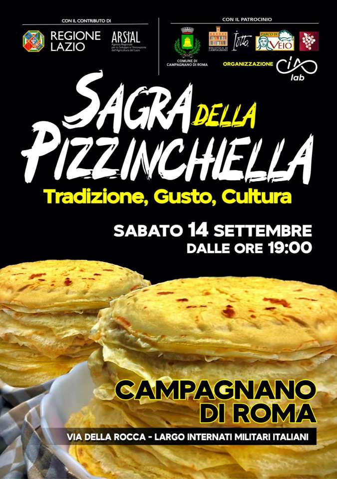 Sabato 14 Settembre a Campagnano di Roma arriva la prima Sagra della Pizzinchiella, la tradizionale crepes campagnanese, la cui ricetta è il simbolo di una tradizione culinaria che si tramanda oralmente da generazioni. Una specialità che racconta la storia di una comunità profondamente legata alla propria identità agricola. La manifestazione si pone l’obiettivo di celebrare la tradizione enogastronomica del territorio, attraverso la promozione e la valorizzazione dei prodotti tipici locali: promossa dall’Associazione CiaoLab, con il contributo di Arsial e della Regione Lazio, patrocinata dal Comune di Campagnano di Roma, dal Parco di Veio, dalla Biblioteca Comunale di Campagnano e dalla Cantina Vinopoli.