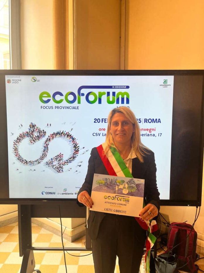 Con una percentuale di 75,6 di raccolta differenziata per l’anno 2024, Castel Gandolfo ha ricevuto da Legambiente il premio come Comune più riciclone.