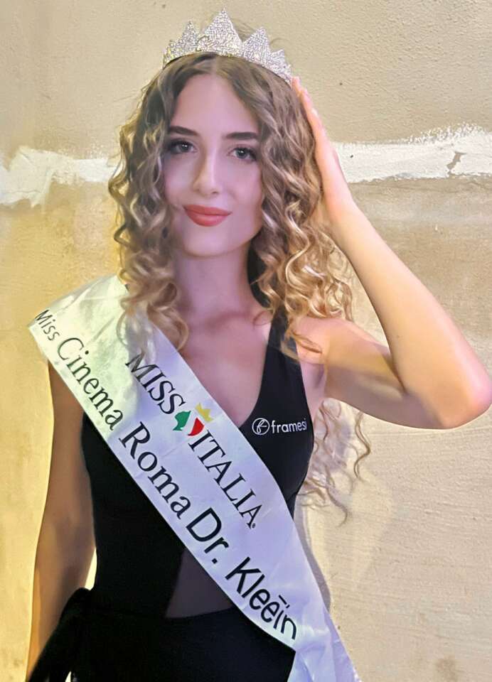 MISS CINEMA DR. KLEEIN ROMA 2023 EVELYNE BIAGIOLI, 18 anni, nata a Tivoli ma residente a San Polo dei Cavalieri, capelli biondi, occhi celesti, alta 173 cm. Deve frequentare il 5° anno di liceo artistico, pratica pole dance e nel tempo libero ama viaggiare e disegnare. Sogno nel cassetto? Ne ha più di uno: diventare modella, attrice, curatrice museale.