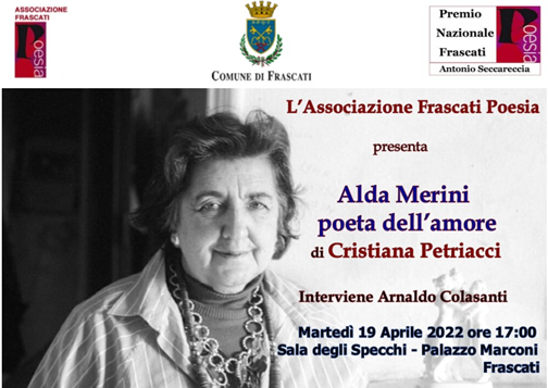 L’Associazione Frascati Poesia, in collaborazione con il Comune di Frascati, presenta Martedì 19 aprile 2022 ore 17.00 presso la Sala degli Specchi, Palazzo Marconi – Frascati, il libro di Cristiana Petriacci “ Alda Merini poeta dell’amore” ETPbooks Editore. L’autrice ripercorre le tappe salienti della vita di Alda Merini, con le persone, i luoghi e tutto quanto le era caro, seguendo un unico filo conduttore, l’amore; e lo fa con un’accurata selezione di testi, che accompagnano ed esplicitano il vissuto, come pure le sue riflessioni sulla vita e sulla poesia. Il ritratto che ne scaturisce è fresco e fuori dai soliti schemi della critica, quasi si trattasse di un’amica con cui si conversa del più e del meno, raccontando episodi accaduti e “dettando” versi, come in effetti la poetessa negli ultimi anni era solita fare. Uno stile che permette al lettore di sentirsi partecipe, “stupendamente accanto” a questo colosso della poesia sì, ma anche a una donna con tutte le sue fragilità, che sempre, sia nella gioia che nel dolore, ha amato la vita in un unico afflato con la poesia. Interviene Arnaldo Colasanti .