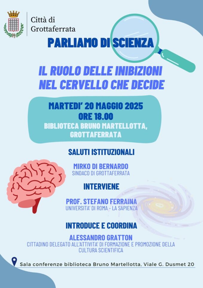 “Quello del 20 maggio sarà un incontro illuminante. Grazie al contributo di esperti nel campo delle neuroscienze, esploreremo le potenzialità del nostro cervello e dei meccanismi inibitori. Ancora una volta, la nostra Amministrazione ha voluto dedicare spazio a tematiche dall’elevato valore comunitario, perché siamo convinti che lo sviluppo del patrimonio culturale collettivo passi anche attraverso la Scienza. Un sentito ringraziamento al professor Stefano Ferraina e Alessandro Gratton”, dichiara il Sindaco Mirko Di Bernardo.