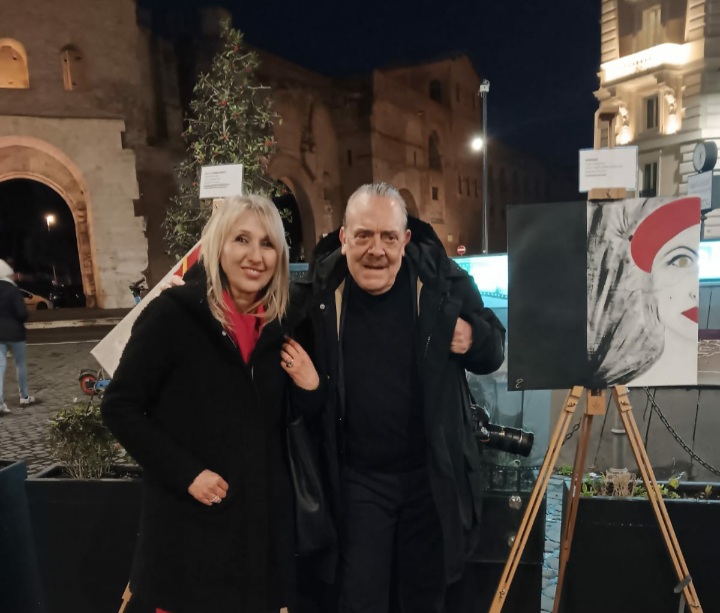 Il Natale fa ingresso a via Veneto e con lui anche le luci della Dolce Vita, evocata ieri, tra arte e bellezza a Largo Federico Fellini nello storico salotto dell’Harry’ s Bar. L’evento promosso dall’Associazione Largo Federico Fellini Onlus presieduta da Pietro Lepore ha visto tra gli ospiti d’eccellenza il re dei paparazzi Rino Barillari esponendo al pubblico le foto più celebri della vasta collezione di “The king of paparazzi”. Una giornata condotta dalla giornalista Chiara Rai, all’insegna della musica e dell’arte in Largo Federico Fellini che ha accolto accanto all’esibizione di tango argentino eseguita anche da campioni europei e italiani paralimpici, anche la mostra pittorica di Alessia Galli e di Patrizia Claps, quest’ultima volutamente dedicata alle donne di cui l’artista racconta la storia attraverso il rosso e nero.