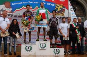 A Nemi ed ai Castelli Romani si è scritta la storia della mountain bike. Il Campionato Italiano Cross Country ha regalato emozioni uniche, soprattutto nella seconda giornata, quella riservata agli agonisti. Tutto secondo copione nella categoria élite donne, dove la tricolore in carica Eva Lechner (Centro Sportivo Esercito) ha collezionato il quinto titolo tricolore consecutivo: mai nessuno come lei prima d’ora. Una gara condotta in solitaria dall’inizio alla fine per la Lechner con un distacco considerevole sulla seconda classificata: Anna Oberparleiter (Carraro Team Trentino), terza Judith Pollinger (Sunshine Racers Asv Nals). Le sorprese, invece, non sono mancate nella prova élite uomini. Al secondo giro il campione italiano uscente e bronzo olimpico a Londra 2012, Marco Aurelio Fontana (Cannondale Factory Racing), era davanti con alle spalle un gruppetto di inseguitori. Poi il diluvio si è abbattuto su Nemi ed ha frenato la cavalcata di Fontana. Ad approfittarne un motivato Mirko Tabacchi (Gruppo Sportivo Forestale), primo ed emozionatissimo al traguardo. Sul secondo gradino del podio Andrea Tiberi (Centroltech Nevi). Solo terzo Fontana che all’arrivo è andato subito a complimentarsi con il neo tricolore Tabacchi. Di buon mattino, tra gli juniores uomini, la firma d’autore è stata quella del valtellinese Gioele Bertolini (Control Tech Nevi), argento in terra svizzera a Berna nel recente europeo cross country: una battaglia avvincente con Alessandro Saravalle (Cicli Lucchini.com), secondo. Terzo Michael Spoegler (Sarntal Raiffeisen/Rad). Per Bertolini è il terzo titolo italiano Cross Country in carriera dopo la doppietta tra gli esordienti nel biennio 2008—2009.