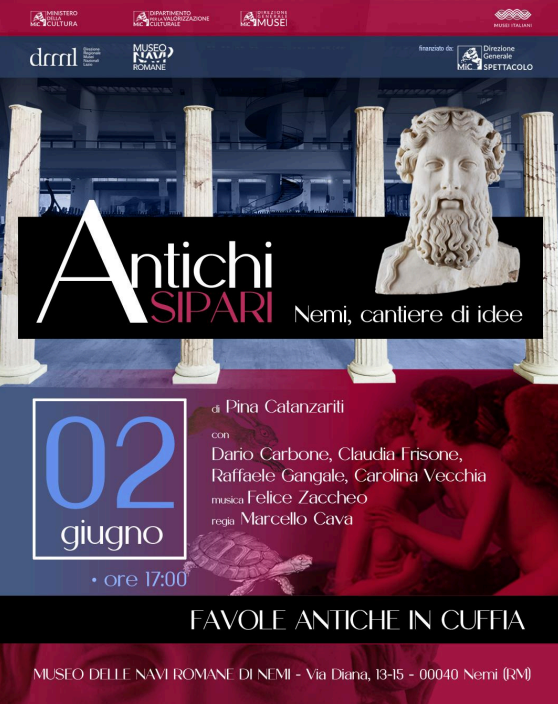 itinerante) ascoltando in cuffia la partitura testuale, sonora e musicale ed incontrando nel suo movimento i luoghi, i corpi e gli accadimenti. Spazi attraversati e visioni spettacolari, messinscene pensate come installazioni. L’ascolto in cuffia è fortemente coinvolgente, non ha “impatto acustico” e non crea alcun disturbo ai visitatori tradizionali. Il 2025 per il Museo delle Navi Romane di Nemi sarà un anno di grande rinnovamento e novità: diversi cantieri interessano il Museo per il restauro e il riallestimento, tanto che il motto del museo per il 2025 è “Aperti per lavori”. In quest’ottica di continuità dell’offerta culturale per non “abbandonare” il pubblico si inserisce la programmazione per il progetto Antichi Sipari 2025, che reca come sottotitolo “Nemi cantiere di idee”, con un doppio riferimento sia alle attività di grande rinnovamento dell’edificio, sia alle tante iniziative culturali in corso.