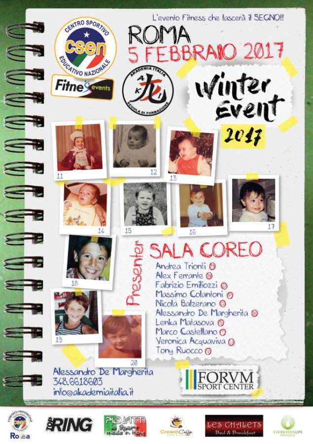 Torna l’appuntamento invernale con il Fitness Romano targato Csen: torna lo Winter Event edizione 2017 – inizia così la nota CSEN Fitness Events. L’evento, che vedrà il 5 febbraio più di 20 tra i migliori Presenter e Istruttori del panorama nazionale alternare le loro lezioni sui palchi delle Sale Tone, Coreo e Olistic allestite nello splendido Forum Sport Center, ha già spopolato su Facebook grazie ad un contest che permetteva di aggiudicarsi l’ingresso ad una delle sale principali. Sulla pagina ufficiale Csen Fitness Events è stato infatti lanciato il #FitnessSurpriseGame, culminato con le due locandine delle sale, nelle quali i Presenter e gli Istruttori partecipanti sono stati presentati con la loro foto da piccoli, in ordine sparso rispetto ai loro nomi, chiedendo ai fan della pagina di indovinare a chi corrispondesse ogni foto. Un modo nuovo per invitare tutti gli affezionati della pagina, e degli eventi fitness targati Csen, a scoprire un altro lato dei personaggi che appaiono solitamente col sudore sulla fronte, il bicipite scoperto e lo sguardo ammaliante – continua così la nota. E quindi, come appariva da piccolo il Referente Nazionale del circuito, nonché ideatore e Master Trainer dei programmi fitness Aerokombat e H.d.p. Cristian Cacace? E Fabrizio Pellecchia, patron del programma di fitness funzionale B.F.T. che sta spopolando? Ci sono proprio tutti: dall’Aki Coreo System di Alessandro De Margherita, Fabrizio Emiliozzi e Massimo Colantoni a Lenka Matasova e Andrea Trionfi (B.F.T. e Coreo), da Lucia Corti e Valeria Caravà dello Z-Live a Cristiano Lollo che presenterà il nuovo workshop di Olistic Workout – Stretching dei Meridiani, da Simona Mirra di Strike a Nicola Balzerano e Veronica Acquaviva per la coreo, da Alessandra Comandini con H.D.P. e EvoBoard a Donatella Carafa con il Real Marines Workout, per finire con gli ospiti romani Marco Castellano, Alex Ferrante e Tony Ruocco. Tutti, rigorosamente, in veste under 12, per farvi scoprire un lato di loro che non conoscevate! Siete curiosi? Vi aspettiamo sulla pagina Csen Fitness Events – si conclude così la nota – per scoprire i risultati del #FitnessSurpriseGame e tutti gli aggiornamenti sull’evento fitness invernale che non potete perdere.