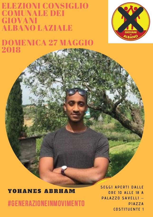 Ascoltiamo le proposte di Yohanes Abrahm: candidato nella lista Giovani di Albano. Nato ad Addis Abeba, in Etiopia, il 22 Gennaio del 1998, in Italia, con la sua famiglia, dal 2000, oggi residente a Cecchina di Albano. Ha frequentato le scuole elementari e medie a Cecchina, mentre le superiori a Velletri, al Cesare Battisti, indirizzo Geometri, di cui è stato anche rappresentante d’istituto. Diplomato l’anno scorso e ora sta continuando gli studi presso la facoltà di Ingegneria Edile-Architettura all’università di Roma “Tor Vergata”. Ha praticato sport a livello agonistico quali l’Atletica Leggera, il nuoto ed il calcio, è stato volontario nel gruppo di Protezione Civile di Albano e è tuttoggi attivo nelle attività dell’Oratorio San Filippo Neri di Cecchina.