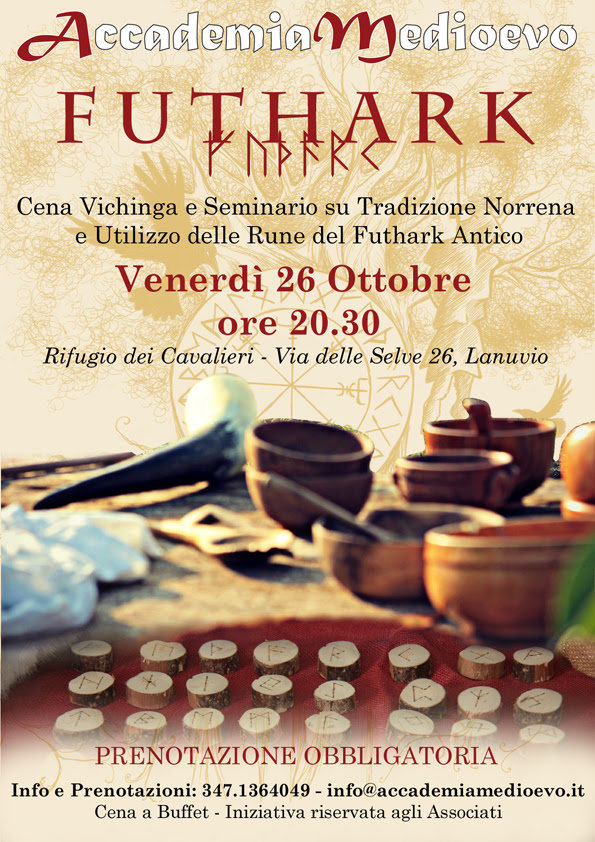 “Accademia Medioevo è lieta d invitarvi ad una serata molto speciale in cui si viaggerà verso Nord, nelle terre dei Popoli Vichinghi e del fascino del dono che Odino fece loro: le Rune.
