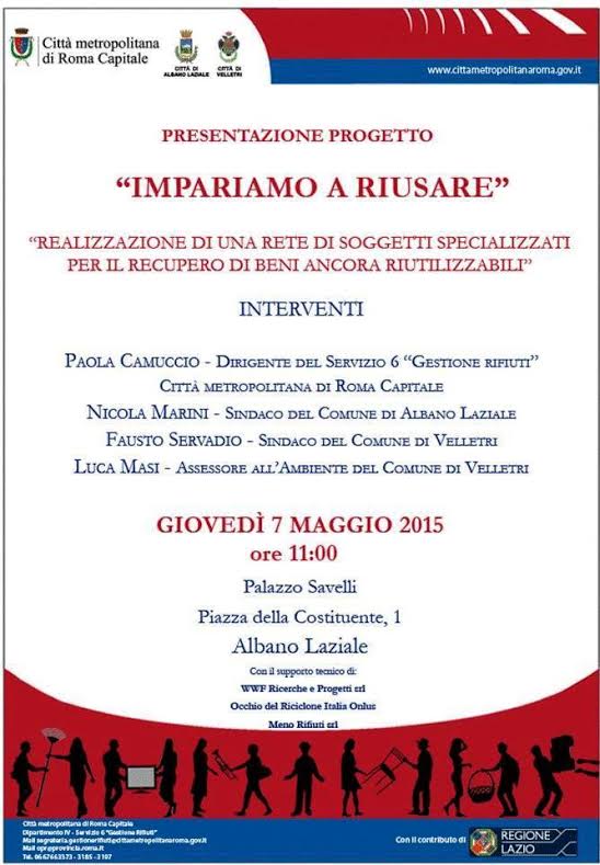 “Impariamo a Riusare” sbarca ad Albano. Il progetto ideato e patrocinato dalla Città metropolitana di Roma Capitale sarà presentato Giovedì 7 Maggio alle ore 11.00 a Palazzo Savelli.