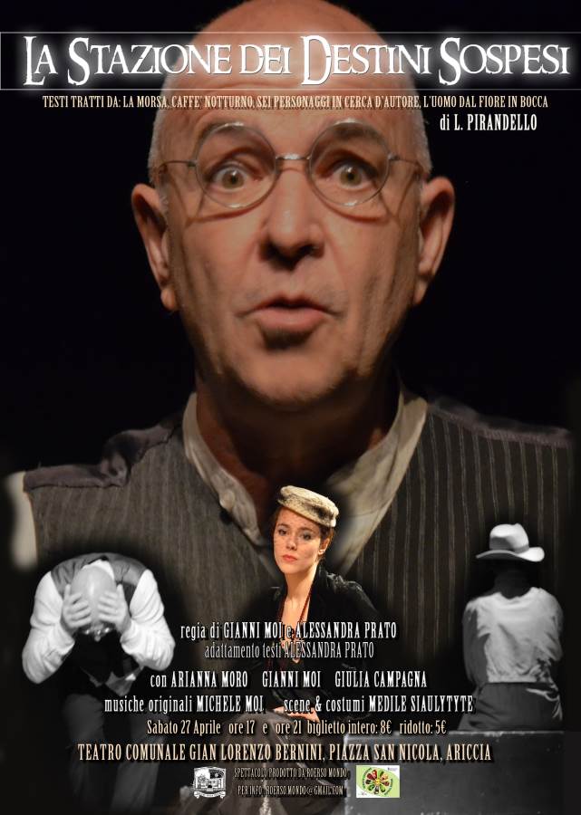 Sabato 27 Aprile 2013, lo spettacolo “La Stazione dei Destini Sospesi”, miscellanea di testi pirandelliani, per la regia di Gianni Moi e di Alessandra Prato, e prodotto dell’Associazione Culturale Roerso Mondo in collaborazione con la compagnia teatrale “La Platea” di Gianni Moi & Alessandra Prato, debutterà presso il Teatro Comunale Gian Lorenzo Bernini di Ariccia (RM), con due repliche, una pomeridiana, alle 17,00 e una serale, alle 21,00.