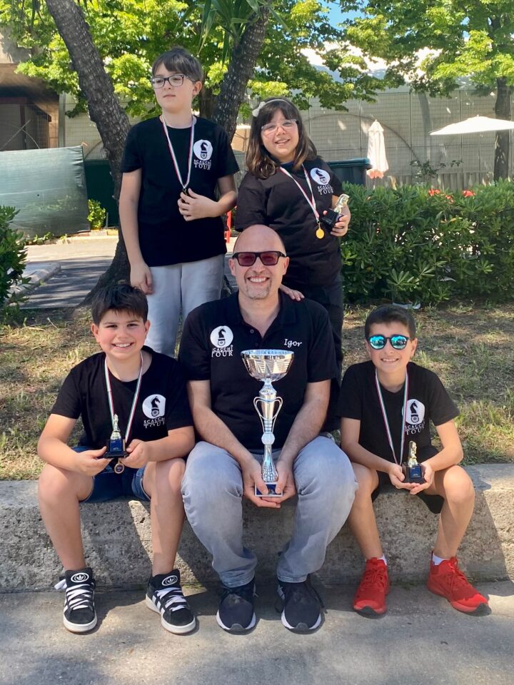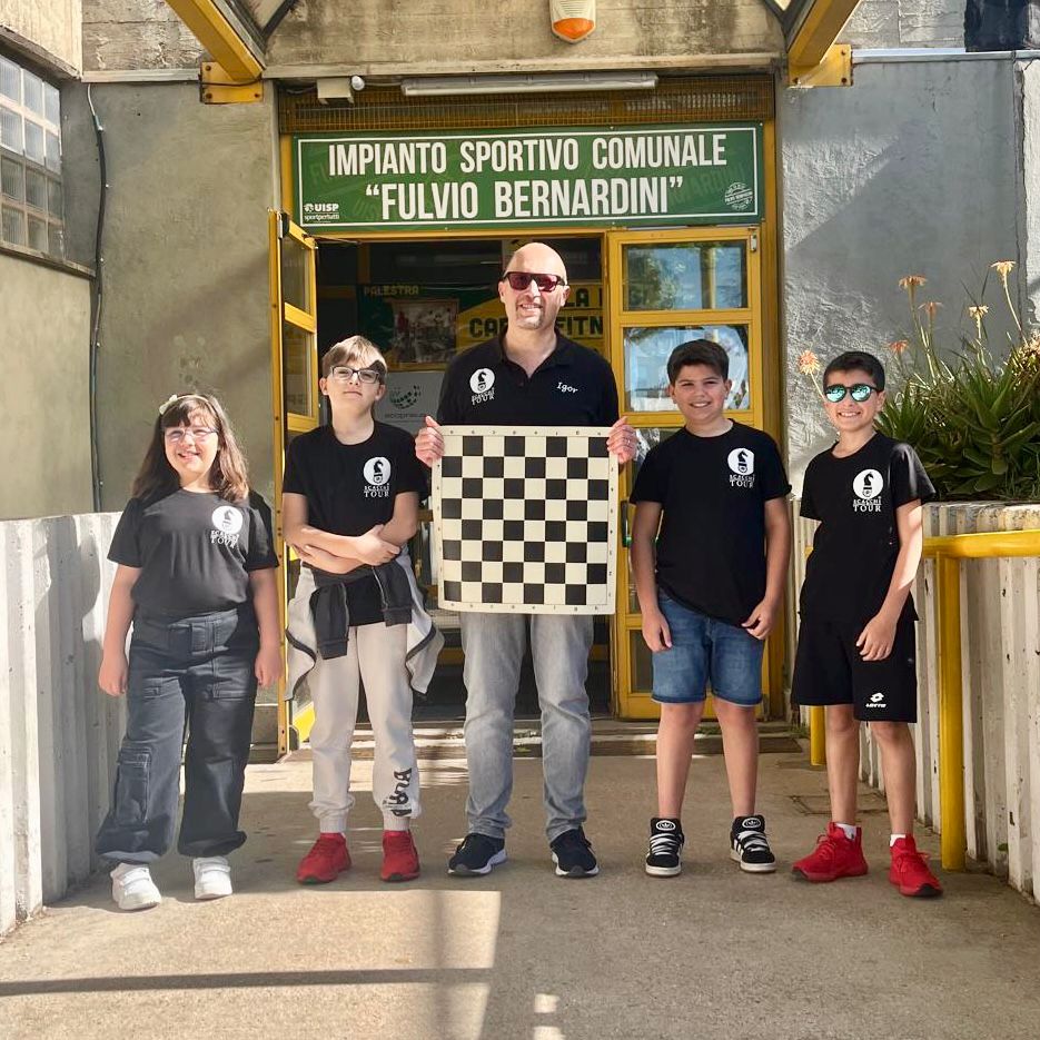 Domenica 25 maggio si è tenuto a Roma presso l’Impianto Sportivo Comunale Fulvio Bernardini il 42º Campionato Scolastico di scacchi a Squadre UISP di Roma e Provincia. L’evento sportivo che da più di quarant’anni coinvolge giocatori e giocatrici di varie età e livelli ha visto quest’anno la vittoria di una scuola dei Castelli Romani, che da 3 anni ha inserito gli scacchi nel proprio programma di studi. Ad aggiudicarsi il titolo di CAMPIONE SCOLASTICO A SQUADRE DI ROMA E PROVINCIA UISP è stato l’Istituto Suore Oblate di Gesù e Maria di Frattocchie, grazie alla collaborazione con l’A.S.D. Scacchi in Tour, i cui istruttori si occupano da un triennio di insegnare scacchi ai ragazzi di 3ª, 4ª e 5ª elementare. La squadra formata da Francesco Pavoni, Francesco Sacconi, Alessio Mauro e Giulia Treccape, tutti soci dell’A.S.D Scacchi in Tour, si è aggiudicata il titolo di Campione Scolastico UISP di Roma e Provincia terminando il torneo da imbattuti, a punteggio pieno, con 10 punti su 10 e 15,5 punti individuali. Da settembre presso le scuole dei Castelli Romani partiranno i nuovi corsi di scacchi dell’A.S.D. Scacchi in Tour e altri bambini e ragazzi potranno scoprire e ampliare le loro abilità mentali esercitandole attraverso la pratica e lo studio del gioco di scacchi, da sempre considerato lo sport della mente per eccellenza.