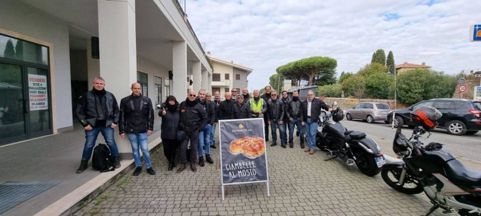 Prima tappa a Marino, dove hanno sostato presso “Da Marcello Forno a Legna”, che li ha omaggiati con un assaggio delle sue famose Ciambelle al mosto. Il viaggio è poi proseguito verso le sponde del Lago Albano, attraversando Castel Gandolfo, Albano Laziale, Ariccia, Genzano e Nemi, dove ha sostato per una breve visita al caratteristico centro storico, affacciato sul lago che da Nemi prende il nome. Infine rotta verso i pratoni del Vivaro, dove l’uscita si è conclusa gustando una braciata “al Quercione”.