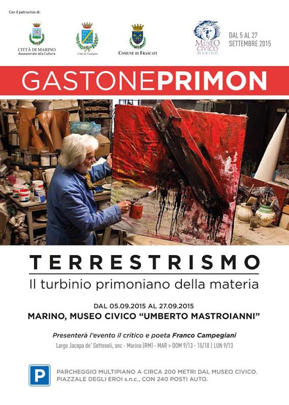 Sarà inaugurata sabato 5 settembre alle ore 18,30 presso il Museo Civico “Umberto Mastroianni” di Marino la mostra d’arte del maestro Gastone Primon intitolata “Terrestrismo – Il turbinio primoniano della materia”.