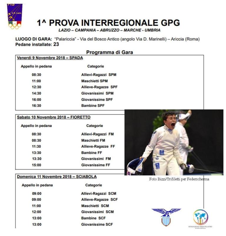 Organizzata dalla Lazio Scherma Ariccia, sotto l’egida del Comitato Regionale Lazio e con il patrocinio del Comune di Ariccia, la 1a prova interregionale è ormai un atteso appuntamento annuale per i circa 1200 atleti, che si daranno battaglia sulle pedane ariccine.