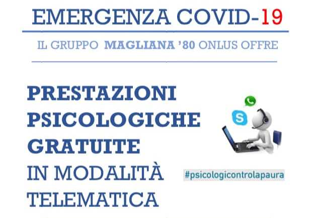 “L’iniziativa – riferisce l’Assessore alle Politiche Sociali Barbara Cerro- è gestita dagli operatori della Cooperativa Sociale “Magliana 80” Onlus con la quale il nostro Comune collabora già da tempo in diversi progetti di carattere sociale. Magliana 80 in particolare assicurerà le prestazioni oltre che alle persone che si trovano in quarantena o in isolamento domiciliare anche a chiunque viva una difficoltà emotiva legata all’emergenza Coronavirus”.