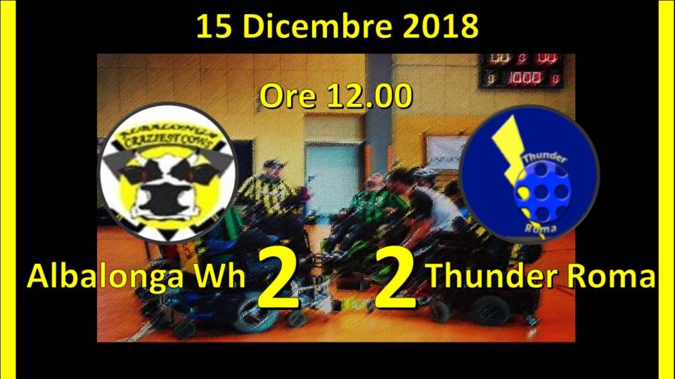 Sabato 15 Dicembre, l’Albalonga Wheelchair Hockey ha affrontato in casa, nella tensostruttura Pala Collodi di Albano Laziale, i capitolini dei Thunder Roma, in uno spettacolare derby che si è concluso con un più che giusto pareggio per 2 a 2.