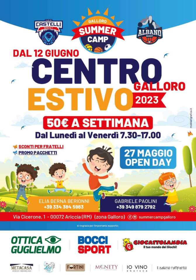 L’estate è alle porte ed è importante non farsi trovare impreparati! Albano Basket propone ai propri piccoli iscritti il centro estivo “Galloro Summer Camp”. Tanto sport, divertimento ma soprattutto attività ricreative e formative all’aria aperta nel verde di Galloro in via Cicerone n. 1 (Ariccia).