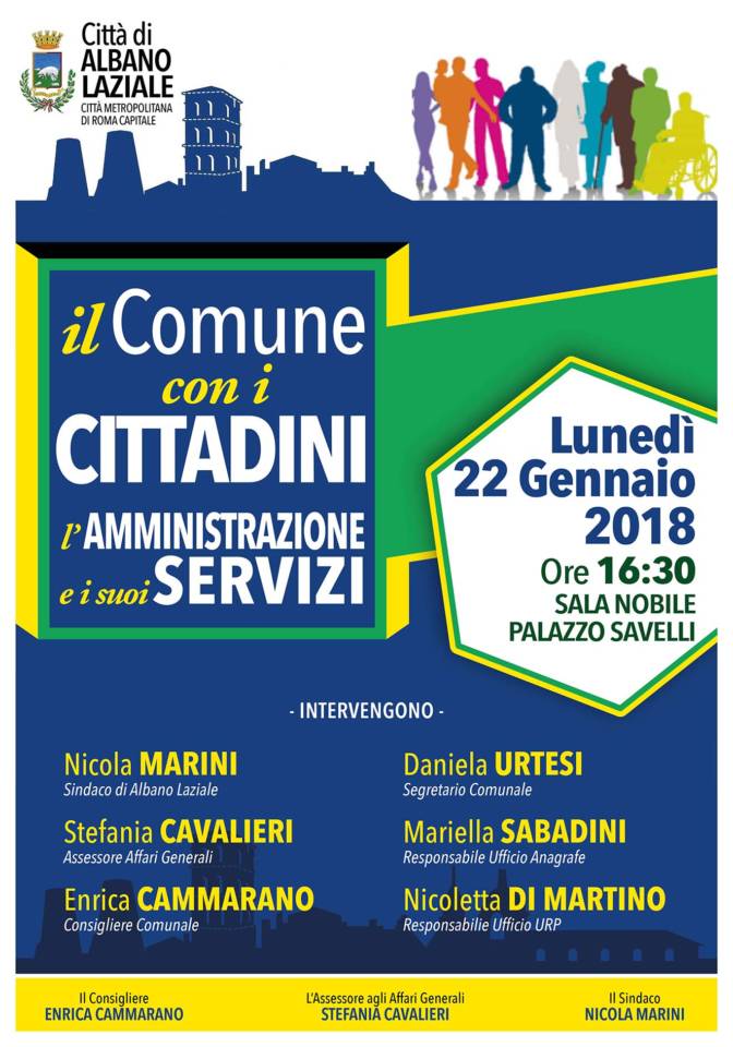 Albano Laziale, lunedì 22 gennaio a Palazzo Savelli dalle ore 16:30 l'incontro pubblico “Il Comune con i cittadini – L’Amministrazione e i suoi servizi”