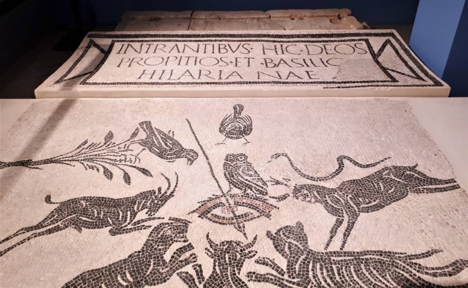 Le scelte di allestimento, poi, con i quattro diversi colori per le quattro diverse sezioni, consentono di interpretare i motivi decorativi e l’aspetto formale delle opere come l’espressione del gusto e della volontà dei committenti, offrendo, al contempo, uno spaccato significativo della società tra il I secolo a.C. e il IV d.C.