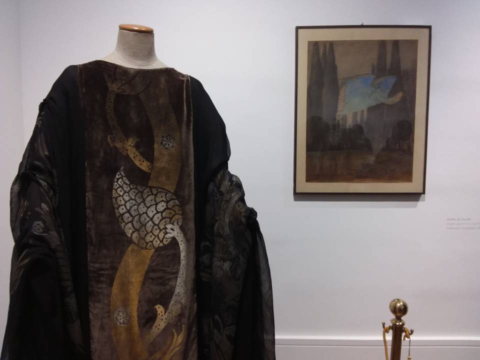 Fino al 3 giugno, la Gnam di Roma, prendendo spunto dai lavori della Gallenga, celebra pure un periodo di grande fortuna proprio delle arti applicate nazionali. In mostra, per la prima volta, circa 80 opere, tra fotografie, disegni e bozzetti che illustrano un mondo di abiti spettacolari. Accanto a queste, dipinti, sculture, vetri, ceramiche, arazzi, lavori in ferro battuto, provenienti da diverse collezioni private, e tutti firmati da illustri signori coevi: Duilio Cambellotti, Felice Carena, Antonio Donghi, Vittorio Zecchin, per citarne alcuni. Maria Monaci Gallenga coniuga modernità e tradizione; ha una spiccata vocazione imprenditoriale, fonda filiali del suo atelier capitolino e predispone una solida rete distributiva dei suoi abiti. Il Futurismo, in quegli anni protagonista della scena artistica italiana, non entra nel suo orizzonte: anche gli artisti che promuove, esponendoli, sono espressione di una modernità coinvolgente e rasserenante, ben lontana dalle stramberie e trasgressioni dell’entourage di Marinetti. La creatività “al femminile” del periodo, si sa, si concentra sulle arti dell’ago e del filo (e del telaio), ma l’originalità dei disegni e l’insuperabile virtuosismo artigianale della Gallenga sono un brand che già parla di “made in Italy”, prima che anche solo il pensiero della parola fosse coniato. Suoi: figurini, mantelli e abiti da sera, giacca da uomo e da signora, cappe, ma pure interviste rilasciate a riviste e giornali d’antan: tutto contribuisce a far brillare la figura di una creativa dalla vena inesauribile, quasi “incurante” dei momenti bui che il mondo stava attraversando e il disastro verso cui s’incamminava. Un disastro a causa del quale anche Maria Gallenga perderà la vita, nel 1944, a Passignano sul Trasimeno, dove si era rifugiata per sfuggire alla guerra.