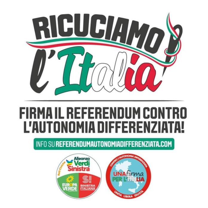 “Alleanza Verdi e Sinistra Velletri comunica che sabato 24 agosto, dalle 16.00 alle 19.30, terrà un banchetto in Via Ettore Novelli angolo Corso della Repubblica, per firmare il referendum contro l’autonomia differenziata. Approvata a giugno, questa riforma cambierà gli attuali equilibri tra lo Stato Centrale e le Regioni, perché attraverso di essa aumenteranno a dismisura le competenze delle Regioni, che potranno legiferare autonomamente su molti settori sensibili e importanti per la vita dei cittadini: sanità, istruzione, welfare, infrastrutture e trasporti, ambiente, tutela e gestione delle risorse idriche e dei rifiuti, tutela e sicurezza sul lavoro, fornitura e trasporto energia elettrica, e molte altro. In più, le regioni potranno trattenere il gettito fiscale, che non sarà più distribuito su base nazionale secondo il principio di solidarietà contenuto nella Carta Costituzionale. Questa legge aumenterà il divario fra Nord e Sud, fra Regioni ricche e Regioni povere, minando un’unità nazionale raggiunta con il sangue degli Italiani che, durante il Risorgimento, hanno lottato per un’Italia unica e indivisibile. Si tornerebbe a un’Italia divisa in tanti piccoli stati regionali, dove ognuno legifera per sé, compromettendo e minando lo sviluppo economico di un Paese, in cui nessuna azienda vorrà investire in una babele di regole, diverse per ognuna delle 21 regioni. Un Paese che vedrà accrescere le disparità sociali e in cui pagheranno sempre i più deboli. Una nazione che vedrà la frammentazione delle politiche ambientali, rendendo impossibile un’efficace contrasto al cambiamento climatico e la salvaguardia del territorio. AVS dice NO al decreto Spacca Italia. AVS dice NO all’ingiustizia sociale e alla negazione dei diritti umani sanciti dalla nostra Costituzione. AVS dice NO al tornare indietro, rispetto ai diritti universali acquisiti in anni di lotta. Firmiamo prima che sia troppo tardi. Firmiamo contro lo smembramento della nostra Italia”. Lo dichiara Alleanza Verdi e Sinistra Velletri