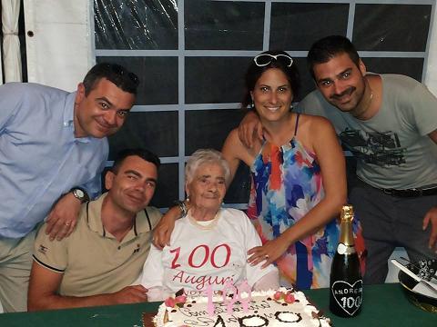 Sorride, nonna Andreina, non nascondendo la sorpresa mentre il sindaco Silvagni le offre di indossare la fascia tricolore conferendole, simbolicamente, la carica di primo cittadino emerito per un giorno. Un sorriso ancora più aperto quando, insieme a Maria, la figlia, ricorda la festa grande regalatele il giorno prima dai quattro amatissimi nipoti (Francesco, Andrea, Manuela e Gabriele) e dai sei pronipoti (Mattia, Nicolo’, Flavio, Alessio, Ilaria e Valerio). Momento di gioia consegnato al futuro grazie alle foto postate sul profilo facebook dalla figlia, Maria. Attimi di vita ricordati per sempre. Con il pensiero, sempre vivo nel cuore di Andreina, di Umberto, scomparso nel 1986.