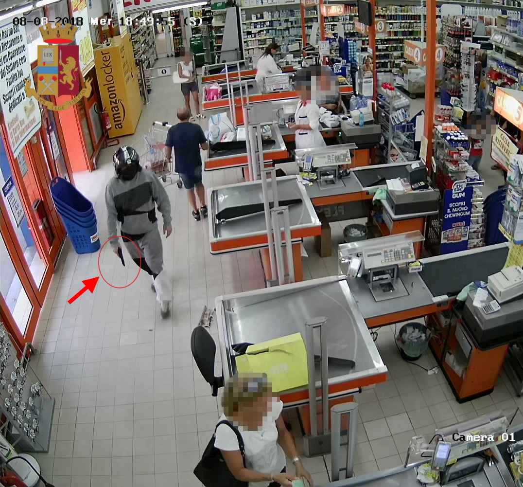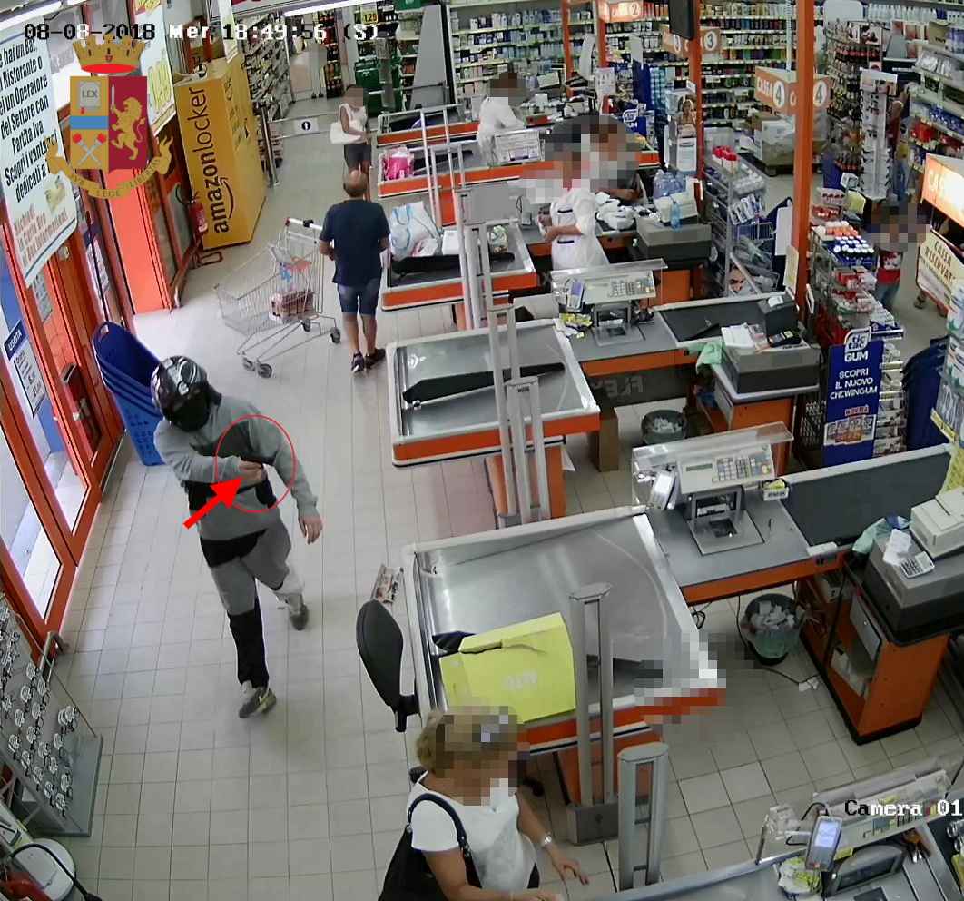 Perquisita la loro abitazione, gli agenti hanno trovato gli indumenti ed i caschi indossati dai malviventi ripresi dalle telecamere nonché la pistola scacciacani impugnata da uno di loro per farsi dare il denaro dalle cassiere.
