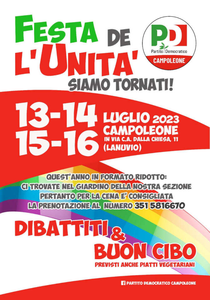 Torniamo finalmente, con gioia, con la nostra Festa De l’Unità!