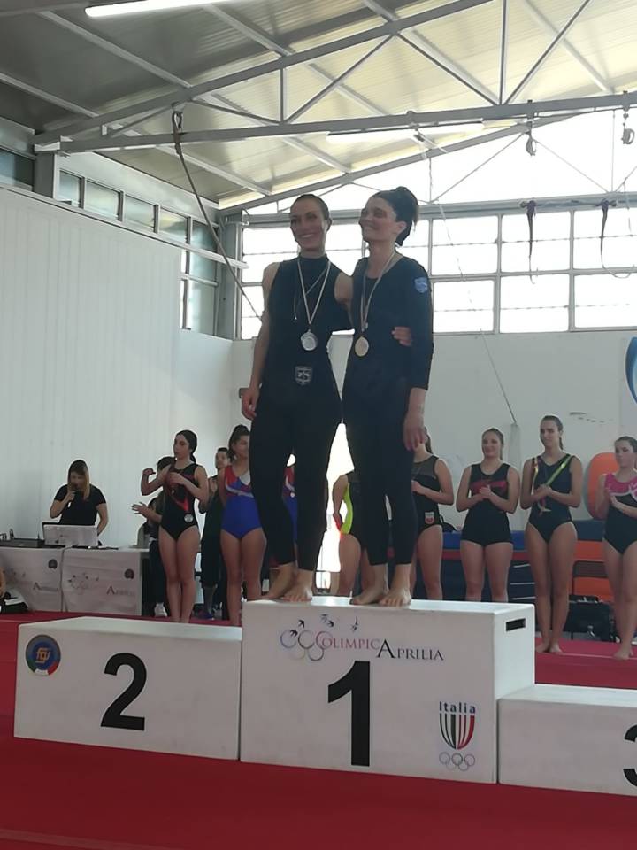 E dopo la più giovane, è stata la volta delle più anziane, tra le quali questa volta sono scese in capo addirittura le “riserve”: dopo vent’anni di lontananza dalle competizioni, si sono riavvicinate a questa splendida disciplina, due “sempre verdi” della Ginnastica Genzano, Francesca Romana Ragno e Floriana Valle, che alla loro “tenera” età, hanno provato di nuovo l’ebbrezza di esibirsi al Corpo Libero con la musica, proprio come un tempo e di salire sugli altri attrezzi, tra cui Trave e Volteggio. Il risultato? A dir poco straordinario! Oltre ad un carico di sensazioni ed emozioni stupende, Francesca e Floriana hanno assaporato il gusto di salire sul podio, conquistando rispettivamen una medaglia d’Oro e una d’Argento nell’LA categoria Senior di 2^ fascia.