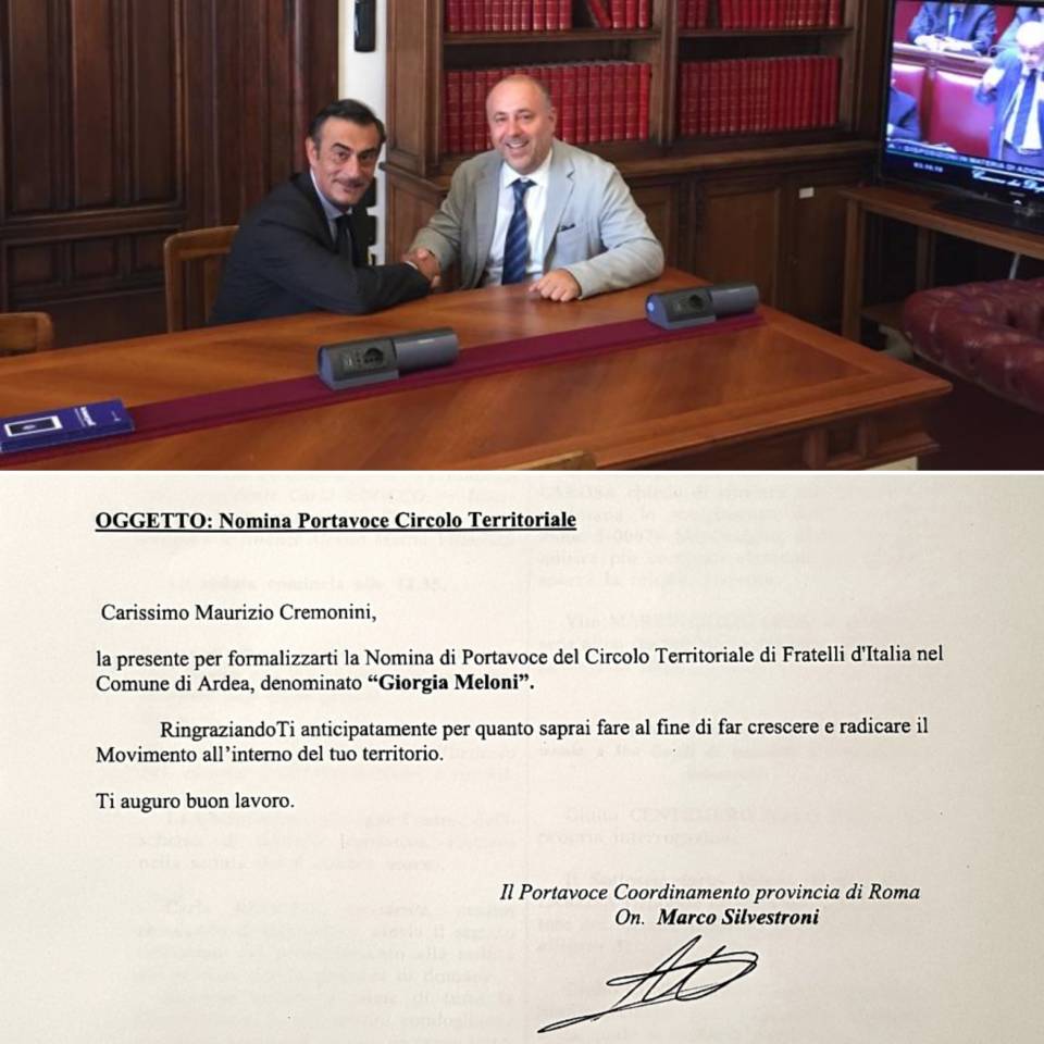 “Ho aderito a Fratelli d’Italia e al programma di Giorgia Meloni convintamente e con entusiasmo. Ho riscontrato la serietà e la volontà del segretario Provinciale di Roma, Marco Silvestroni, ad investire politicamente sul territorio di Ardea e lo ringrazio della fiducia e dell’incarico affidatomi che metterò a frutto per dare voce ai tanti cittadini di Ardea che lamentano gravi disservizi sul decoro urbano, sui servizi scolastici, sulla scarsa tutela del territorio in genere” ha aggiunto poi il neoportavoce del circolo territoriale di Ardea Fabrizio Cremonini.