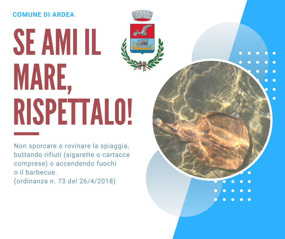 Niente fuochi a Ferragosto. La regola c’è, ma va rispettata. Così l’amministrazione comunale di Ardea ricorda ai cittadini e ai turisti come un’apposita ordinanza (la n. 73 del 26 aprile 2018) esplicita come sia vietato gettare a mare o lasciare sugli arenili rifiuti di qualsiasi genere, bruciare materiali di ogni tipo, accendere barbecue e fornelli da campeggio nonché accendere fuochi liberi direttamente sulla sabbia. Per questo ha lanciato una campagna social dal titolo “Se ami il mare, rispettalo”, con una infografica che riepiloga la disposizione che, prima che dell’ordinanza, è di buon senso.
