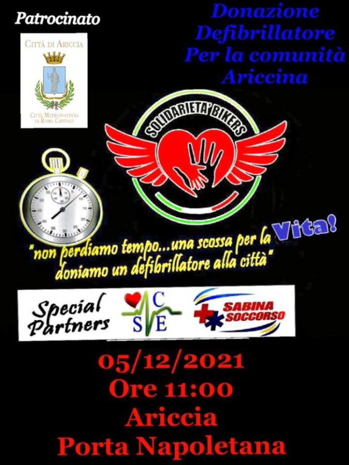 ARICCIA CITTÀ CARDIOPROTETTA, L’INIZIATIVA DELL’ASS. “SOLIDARIETA’ BIKERS”