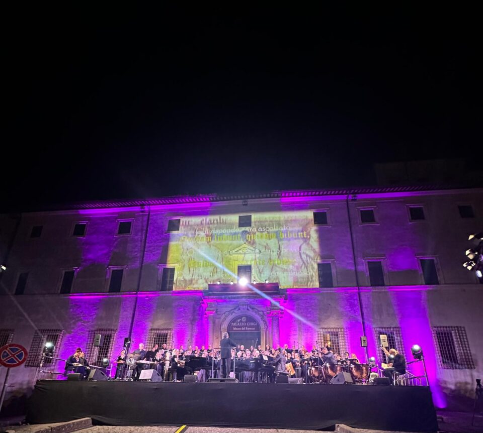 Il pubblico ha potuto poi assistere a uno degli appuntamenti più attesi della Festa Patronale di Santa Apollonia: l’esecuzione dei celebri “Carmina Burana” in Piazza di Corte. Lo spettacolo, curato nei minimi dettagli sotto il profilo musicale e visivo, ha incantato la piazza gremita. Le luci, le didascalie, la precisione dell’allestimento hanno reso l’evento un vero momento di teatro collettivo all’aperto.