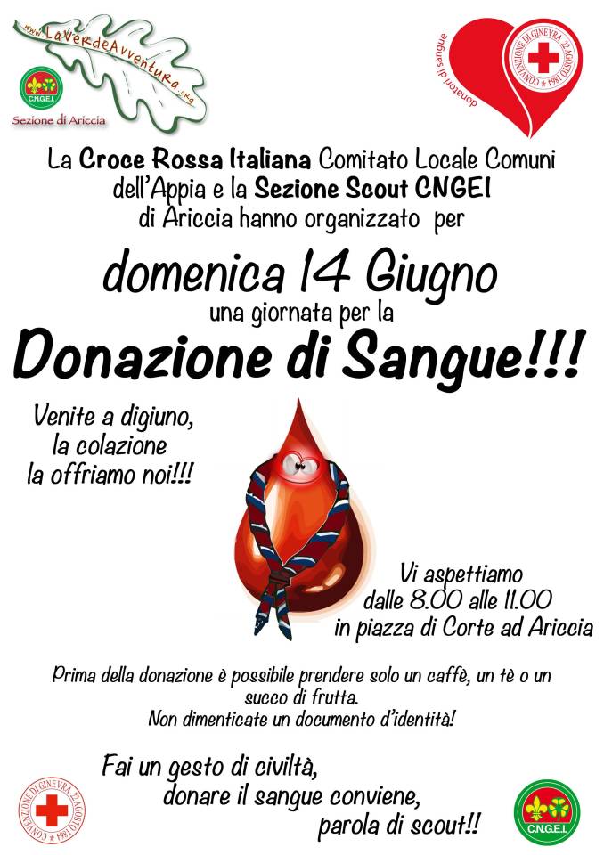 Ad Ariccia centro invece, in p.zza di Corte dalle 8 alle 11 di domenica 14 giugno, ci sarà la campagna di raccolta del sangue con la Croce Rossa di Ariccia e gli scout del Cngei di Fontana di Papa.