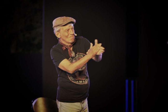 E in effetti Paolo Rossi, accolto da un fragoroso e sentito applauso, assieme ai due musicisti accompagnatori, mette in chiaro lo schema dell’esibizione: un dialogo pacato con tanti aneddoti, un equilibrio perfetto tra improvvisazione e preparazione, un coinvolgimento amicale che si estende dai compagni di scena – cane compreso, lui che è definito l’incarnazione canina di Luigi Pirandello – alla platea, dalla prima all’ultima fila.