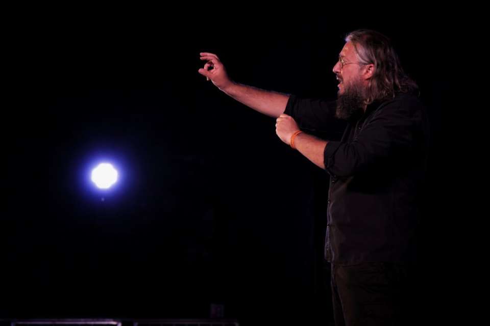La grandezza di Mercadini, nel racconto di un’opera unica grazie alla torrenzialità della sua narrazione e all’architettura talmente complessa da risultare fluidamente coerente nella sua osticità, sta nel riuscire a equilibrare l’altalena della recitazione tra il verso, la spiegazione e l’abbassamento dello spannung reso possibile grazie all’esaltazione dell’ironia ariostesca. Una magistrale sfida, dunque, palesemente vinta come testimoniano il successo di questo spettacolo e gli applausi di Ariccia.