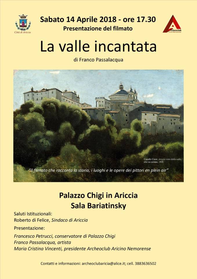 “LA VALLE INCANTATA” il primo lavoro audiovisivo dedicato ai pittori Plenaristi, ovvero i pittori che dipingevano dal vero, promosso dal Comune di Terni, dal Comune di Narni con il supporto della Fondazione CARIT, sarà presentato e proiettato nel Palazzo Chigi di Ariccia sabato 14 aprile alle ore 17.30.
