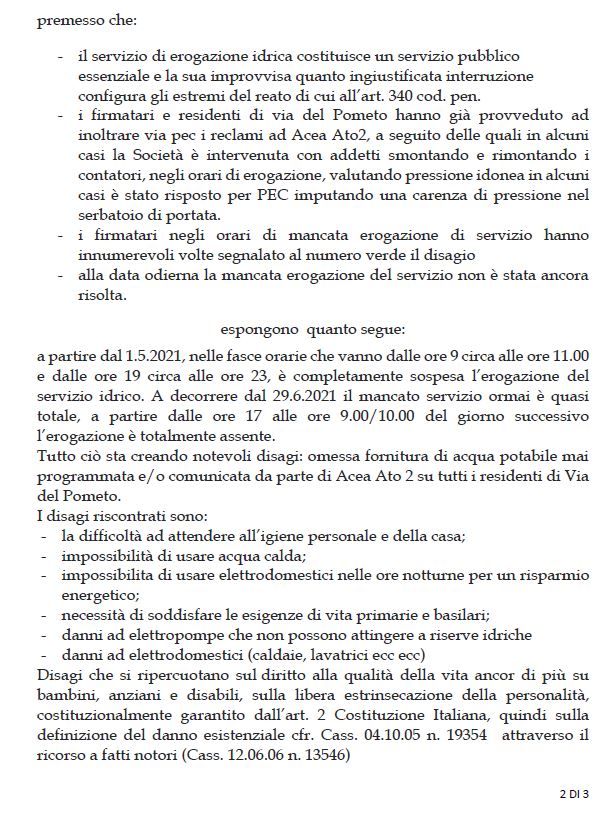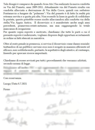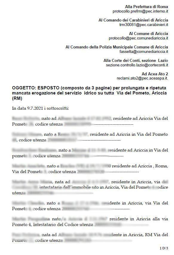 “SENZA ACQUA DA SETTIMANE VIA DEL POMETO, ARICCIA.