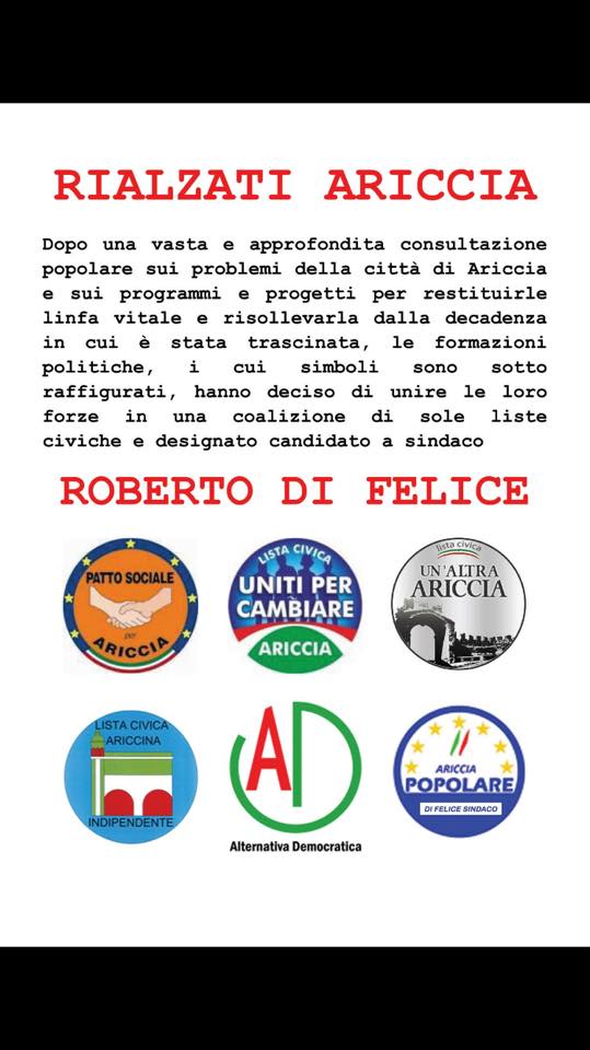 Le 6 liste a sostegno di Roberto Di Felice, candidato sindaco ad Ariccia