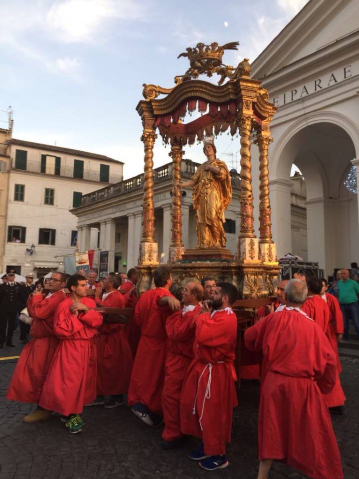 L’incontro con la Santa avviene nella processione e negli officia religiosi (Santo Rosario e Santa Messa, presieduta dal Vescovo Marcello Semeraro) da sempre caratterizzati da una larga partecipazione dei fedeli.