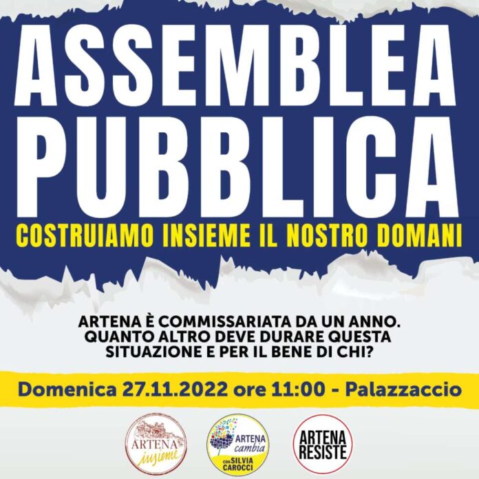 Quanto altro deve durare questa situazione e per il bene di chi? Questo il quesito – titolo dell’assemblea pubblica organizzata per domenica 27 novembre alle ore 11:00 presso il Palazzaccio di Artena dai Consiglieri comunali di opposizione: Silvia Carocci, Sofia Fiorellini, Marco Imperioli Diamante, Erminio Latini, Costante Pompa, Gloria Scacchi e Augusto Angelini.
