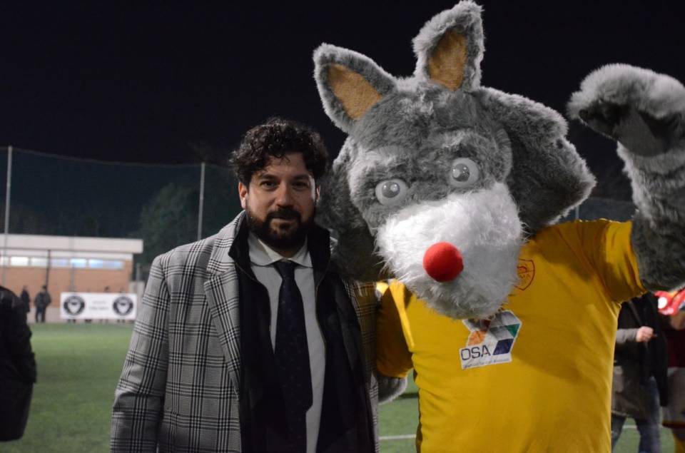 Michel Emi Maritato e la mascotte dell’As Roma calcio a 5