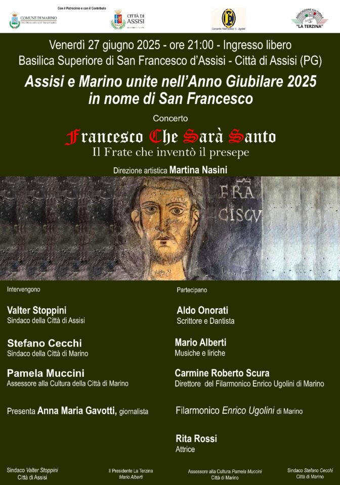 L’evento è promosso dalla Città di Marino, dalla Città di Assisi e coordinato dall’Associazione culturale La Terzina