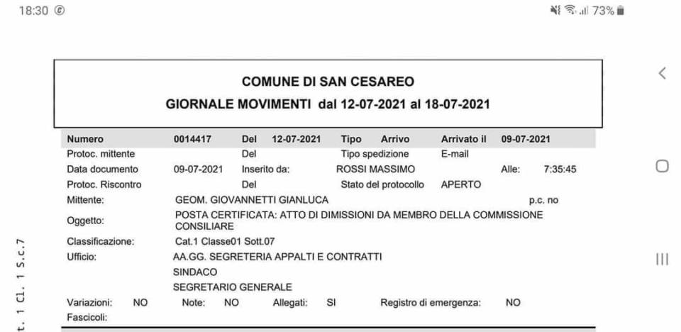 Un altro membro (questa volta della maggioranza) ha rassegnato le dimissioni facendolo in “sordina” senza motivare la sua decisione.